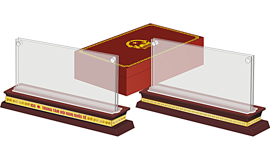 - Thiết kế: Kết hợp phần mica trong suốt với phần đế làm từ gỗ hoặc inox, đồng.