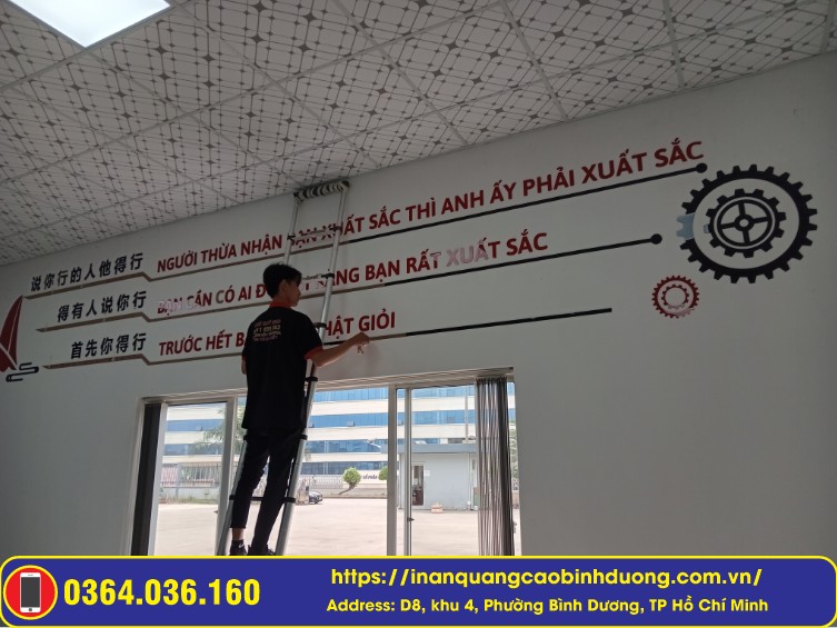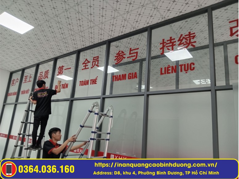Dịch vụ: Thi công bảng hiệu VSIP 2, bảng hiệu Mica cắt Laser, dán decal kính văn phòng.